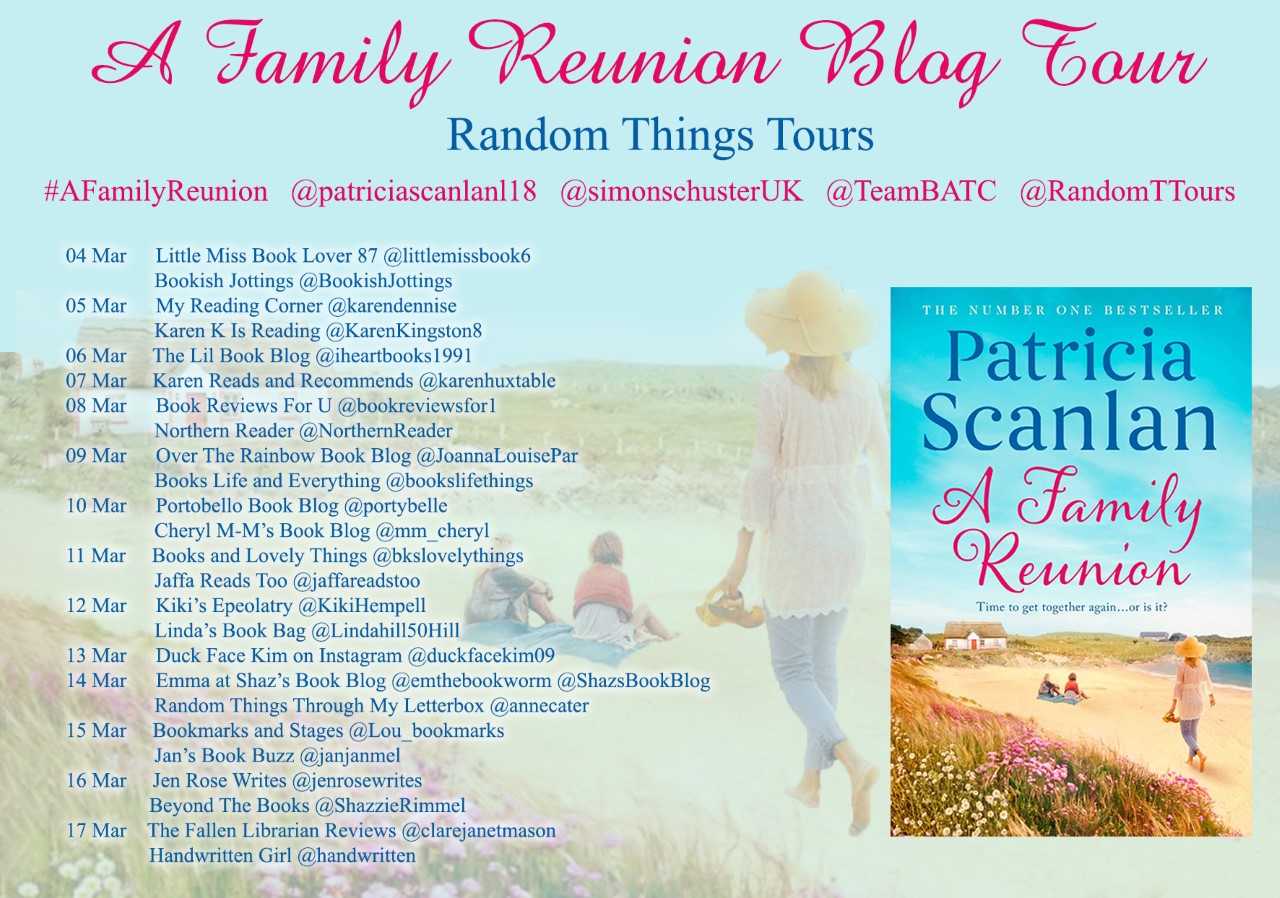 Back in December I ‘attended’ a fantastic evening from @TeamBATC showcasing the books coming in 2021. You can read about that event here. A Family Reunion by Patricia Scanlan was one of those books and I’m delighted to participate in the blog tour for it today by sharing my review. My thanks to Anne Cater of Random Things Tours for inviting me.