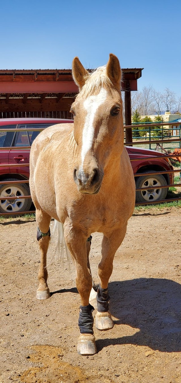 I’ve brought my horse, an American Warmblood gelding named Goldmark.