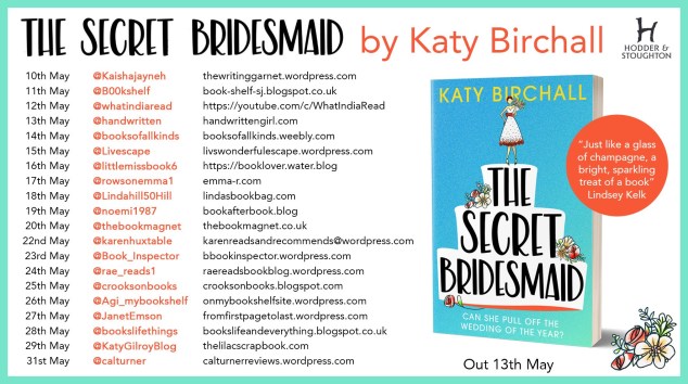 My enormous thanks to the lovely team at Bookends for sending me a copy of The Secret Bridesmaid by Katy Birchall and to Jenny Platt at Hodder for inviting me to participate in this blog tour. I’m delighted to share my review of The Secret Bridesmaid today.