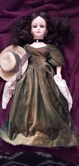 Princess Katerina is extremely tall, at about three feet. I found her leaning against the back wall of a dusty old vintage shop, waiting to be seen. My daughter and I had just finished watching our North and South box-set, starring the delicious Patrick Swayze as Orry Main, and we both agreed that her outfit and gorgeous hat resembled something that Lesley Anne Down might have worn as the stunningly beautiful and fetchingly garbed Madalyn La Motte.
