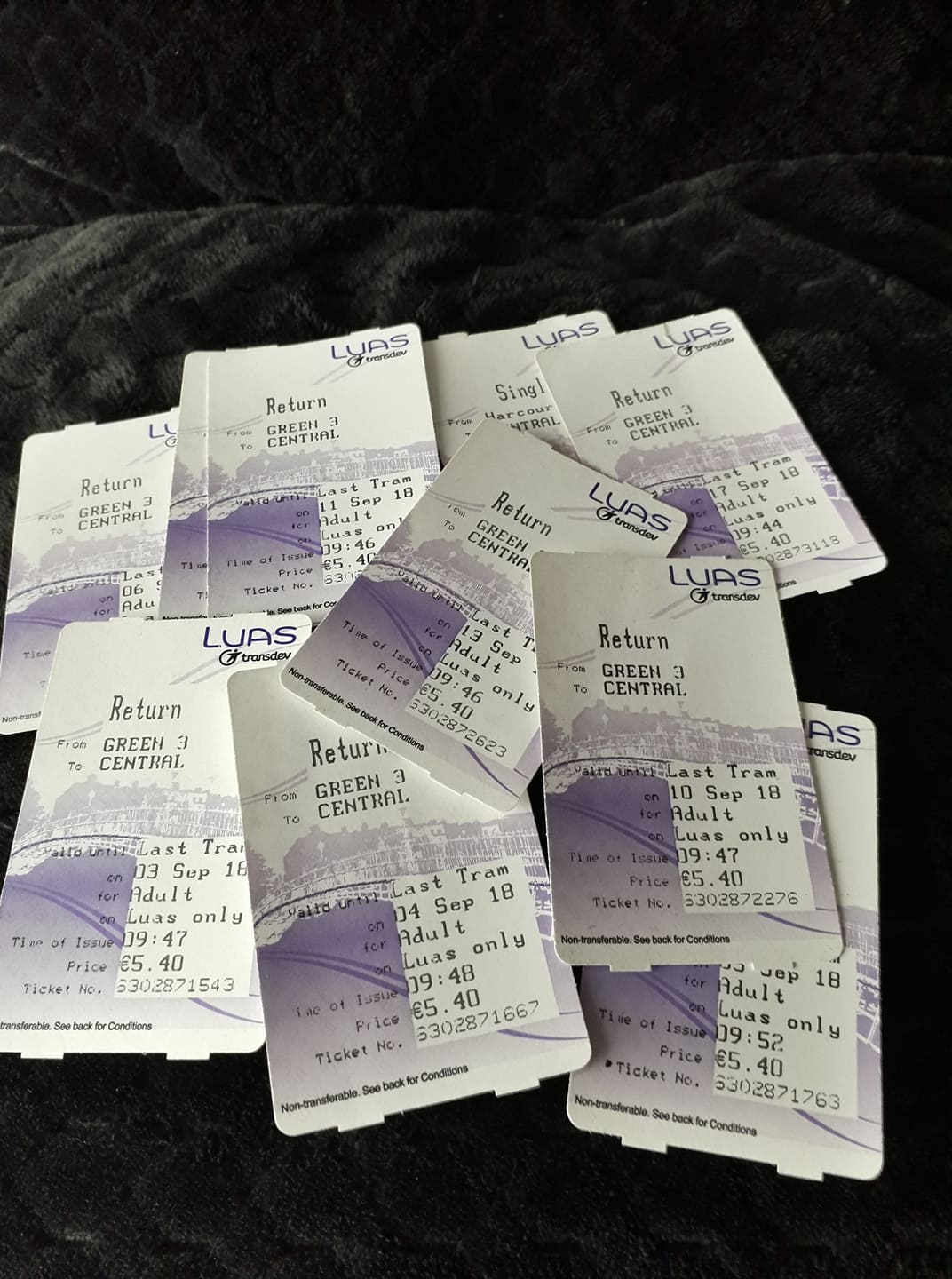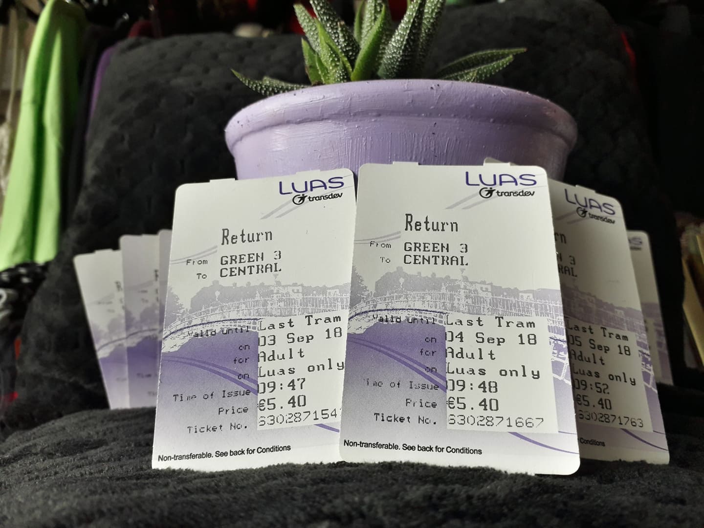 I’ve brought along some Luas (tram) tickets as well, now some of my most important possessions, because they are directly related to the story.