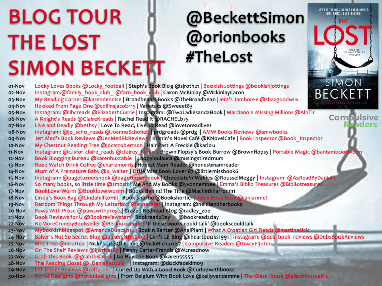 My grateful thanks to Tracy Fenton for inviting me to participate in the blog tour for The Lost by Simon Beckett. I’m delighted to share my review of The Lost today.