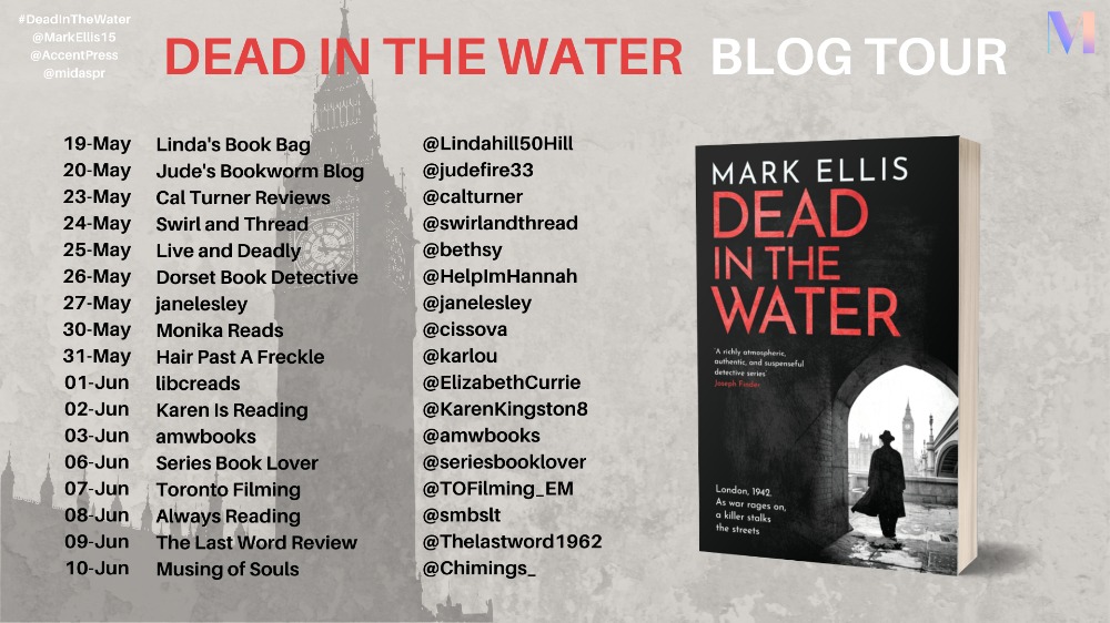 Dead In The Water is the fifth book in the acclaimed DCI Frank Merlin historical detective series and can be read as a standalone. The third novel in the series, Merlin at War, was on the CWA Historical Dagger Longlist in 2018.