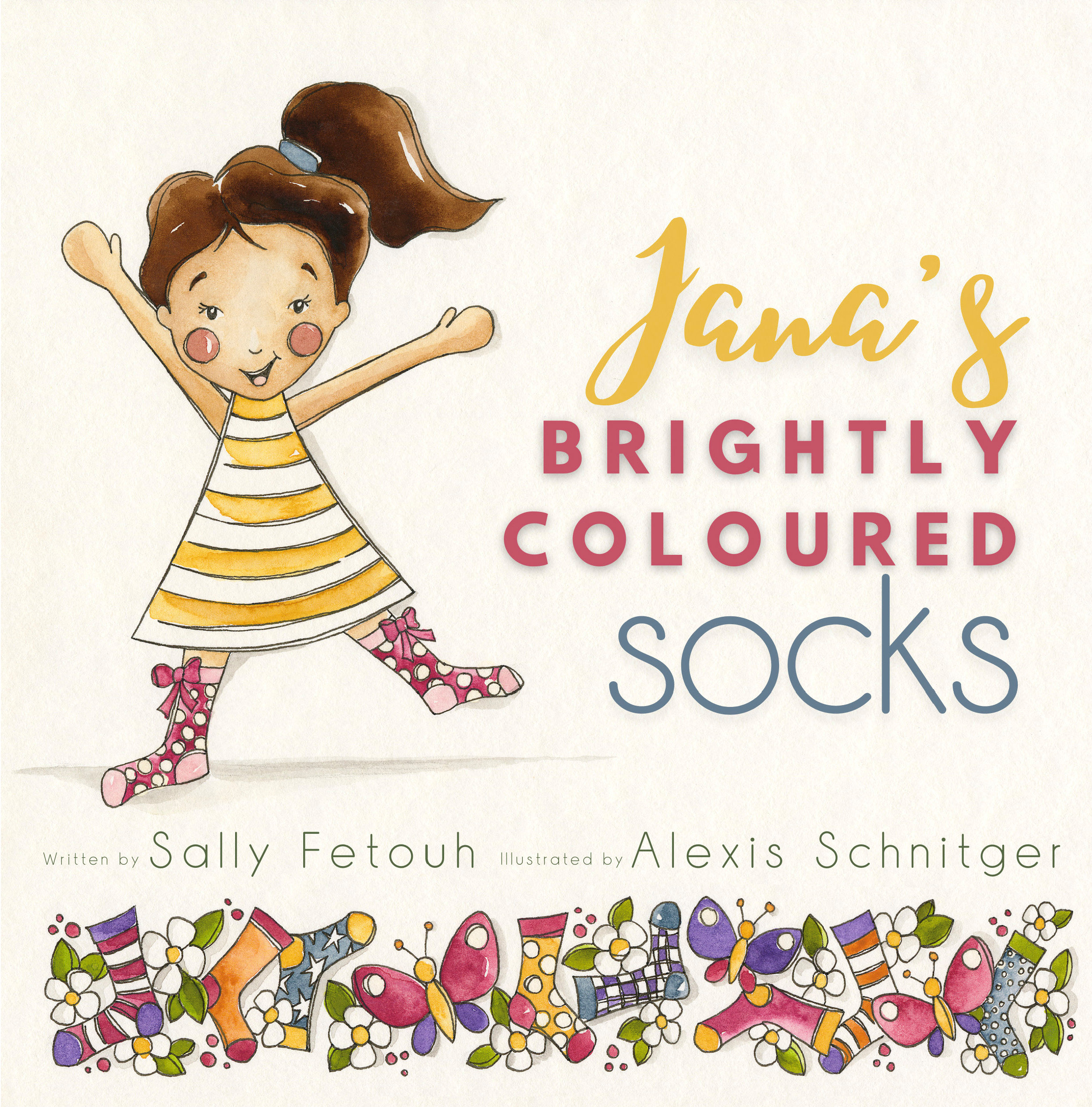 When young Jana receives heaps of beautiful socks from her parents after learning how to put on socks all by herself, she can’t wait to show her friends at school. They are always kind and patient with Jana when they play together. Jana decides to share a pair of her new socks with each and every friend. This calls for a school sock parade! All of the children had so much fun showing off their colourful socks together that they gave a very special and huge gift for their kind and generous friend, Jana, a box of more socks!