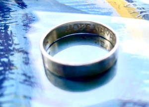 The first thing I have brought to our stay-in (apart from the tea and cake that is) is a ring. It is a fairly simple silver ring that I had made to celebrate the publication of Hope Never Knew Horizon. Inside the ring is a secret – I have had the title of the novel engraved on the inner ring. The words Hope Never Knew Horizon come from a poem by Emily Dickinson. Their relevance to the book is the idea that ‘hope’ is something we give birth to and maybe even say out loud or express in writing or art or film – but having expressed that hope it is then for the world to realise that hope and it is not always the case that it will do so within the lifetime of the person who has the hope but there is a sort of certainty that it will be realised at last. For example, Emily Dickinson harboured the hope of one day having a book of her poems published; this hope was fulfilled only in the year after her death. I wear my ‘Hope’ ring hoping that my book will be read and liked and that it will go on being read and liked even when I am not in the world – if that’s not too morbid a thought to have when we are drinking tea and eating cake. (btw my cake of choice would be something with almond paste in it – like Bakewell or frangipani.)