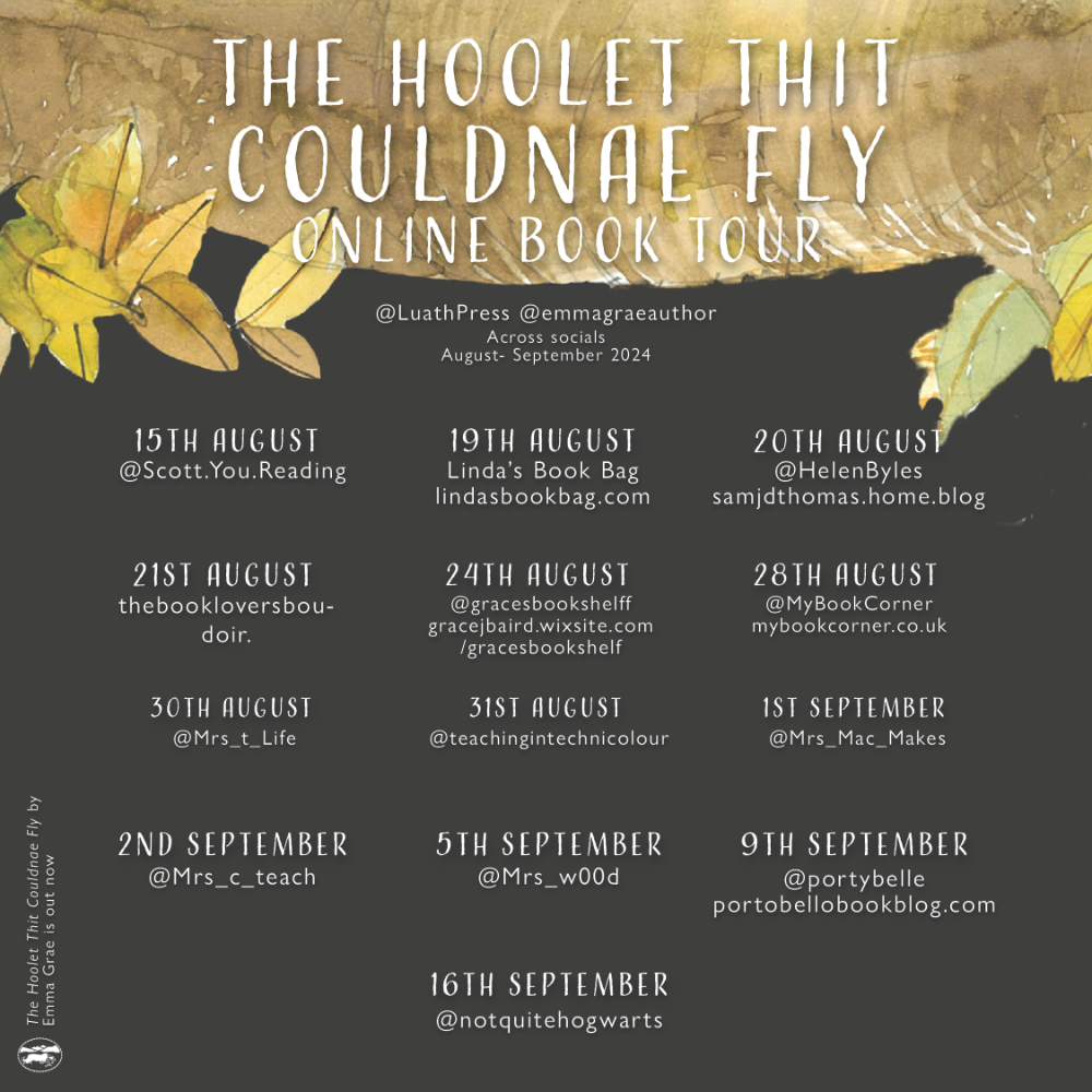 My enormous thanks to Amy Turnbull at Luath Press for inviting me to participate in the blog tour for the children’s book The Hoolet Thit Couldnae Fly by Emma Grae illustratit by Bob Dewar and for sending me a copy of the book in return for an honest review. I’m delighted to share my review as part of the blog tour today.